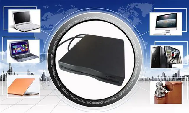 Package includes: External USB floppy drive, color box packaging, USB magnetic ring wire, manual.