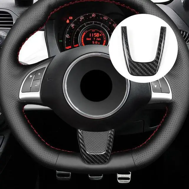 Black Steering Wheel Center Cover REAL HARD Carbon Fiber For Fiat 500