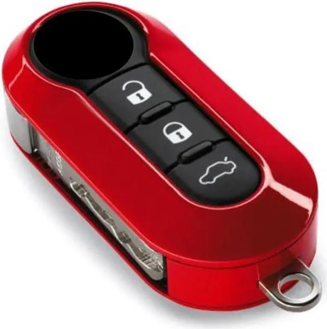 Gloss Red Key Fob Shell Cover For FIAT 500 500L 500X Abarth 3-Button Folding Key