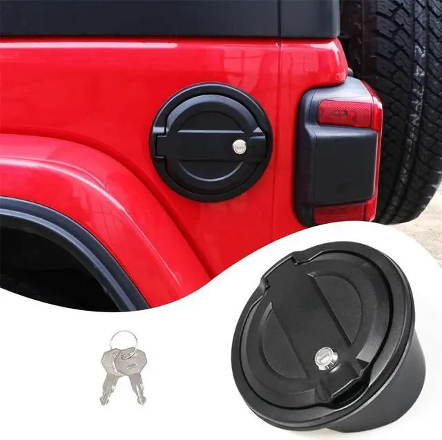 Black Locking Gas Tank Cap Fuel Filler Door Cover For Jeep Wrangler JL 2018-2023