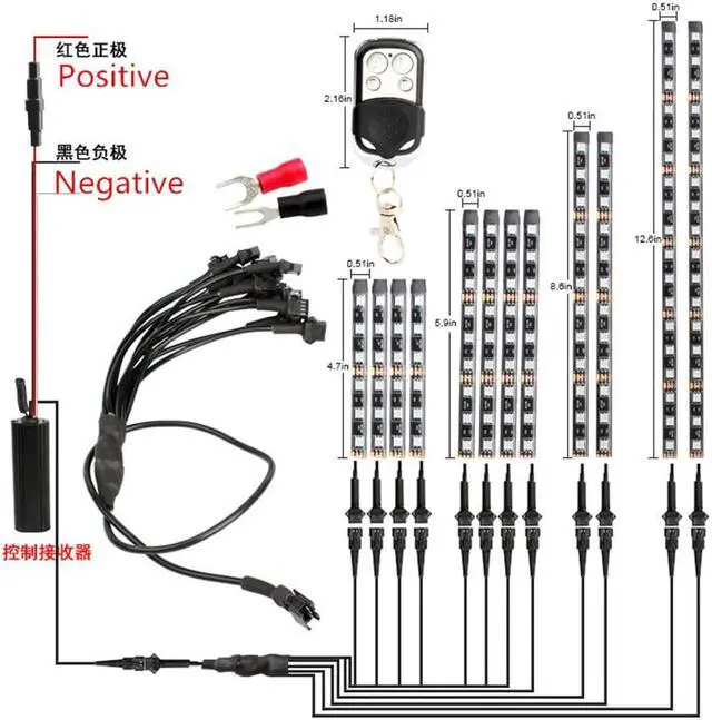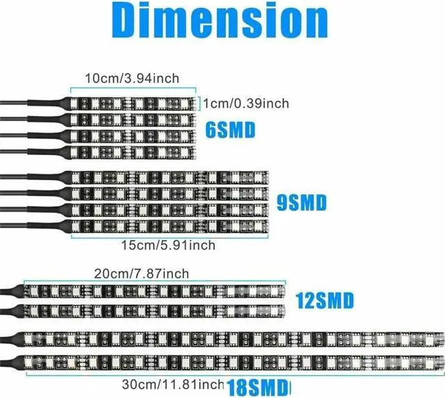12pcs x RGB LED Strip Light (4x10cm,4x15cm,2x20cm,2x30cm).