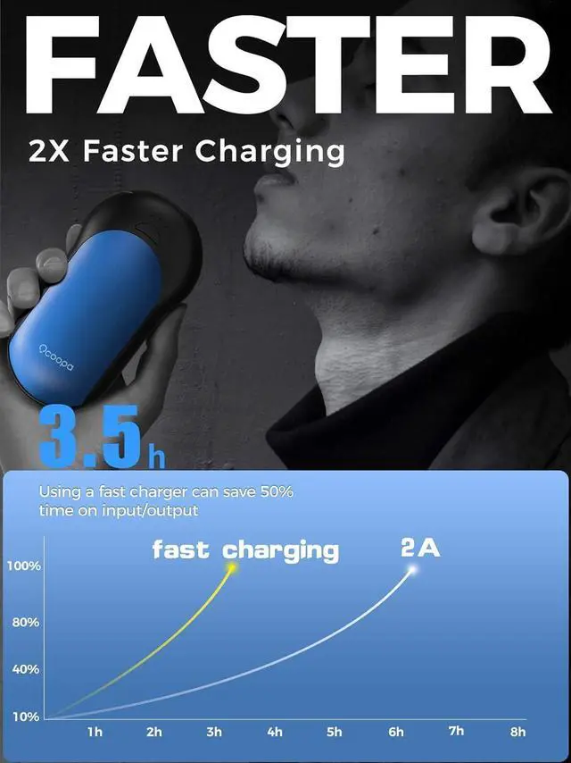 Future-Proof Hand Warmers: Updated Version Hand Warmers from OCOOPA, H01PD series is a technical innovation, supporting PD 3.0 and QC 3.0 fast charging input & output. Charging time halved, using time doubled. Meanwhile insist on 5 sec heating, constant temperature, double-sided heat.