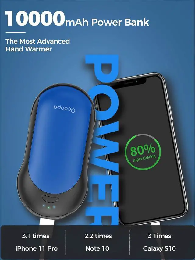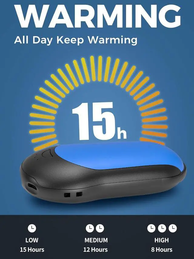 8-15 hrs Using time: Uses a modern blue-and-black design that exterior resembles supercar. Inside that modern aesthetic, youll find a formidable 10, 000mAh rechargeable hand warmer offers you with up to 8-15 hours of warmth in cold winter, outpace your mates.