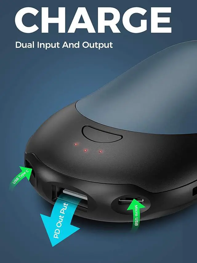 Ultra-fast Charge and Recharge: To get the hand heater full recharge in just 3.5 hours with the 18W USB C wall Charger or micro-USB QC charges. Beside, 10, 000 mAh battery supplies a super fast charge to your devices, so you can spend less time charging and have more time at your disposal.