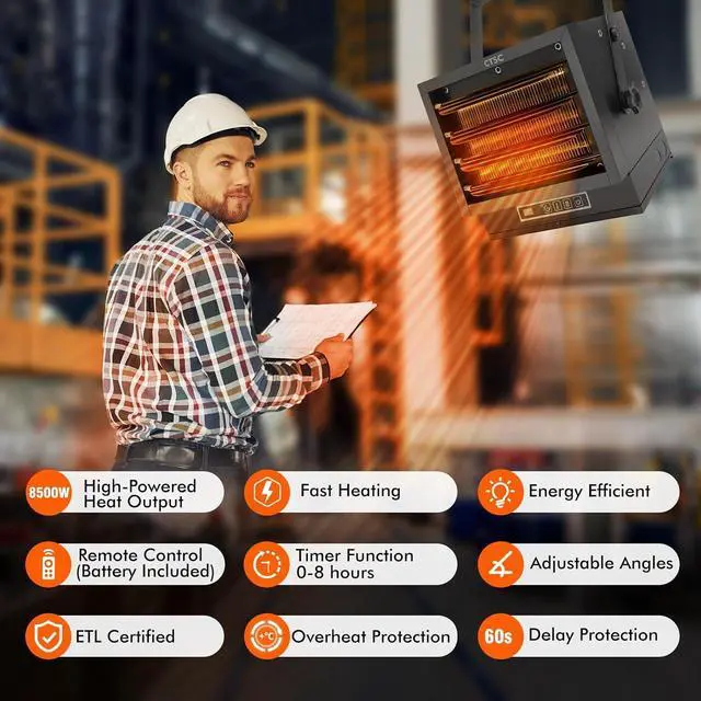 Sturdy Structure & Safety Protection - Constructed from SPCC cold-rolled steel, the body of this commercial heater exhibits exceptional durability. Safety is vital, especially in an enclosed garage, shop, or workspace which is why our heater features overheating protection, ETL certified to ensure it meets your strict safety needs.