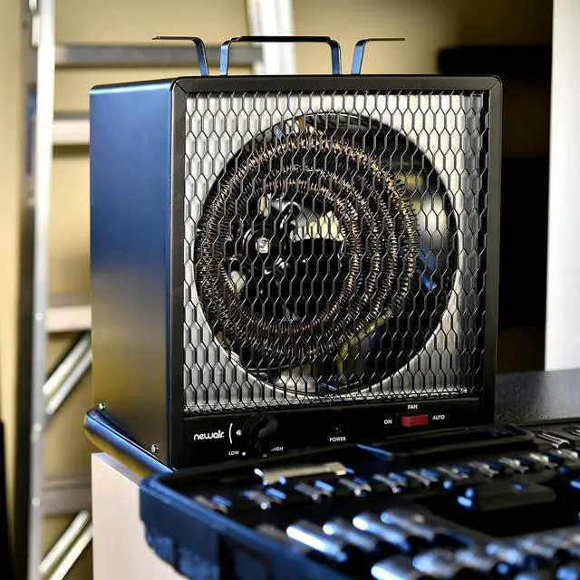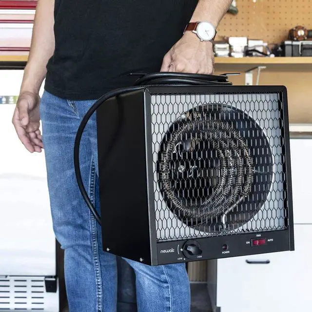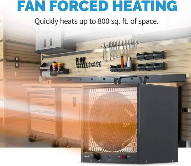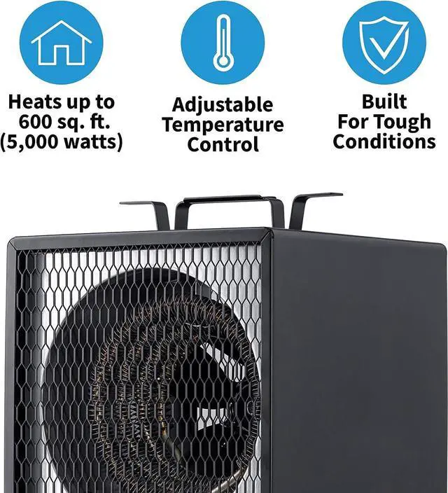 [POWERFUL FAN FORCED HEATING] - With 5, 600 watts of heating power, this electric garage heater packs a punch. It's strong enough to warm up to 600 square feetperfect for a two-car garage or a 24x24 workshop or shed.