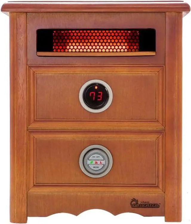 Modern design with furniture-grade cabinet makes this nightstand heater a great way to update your bedroom décor