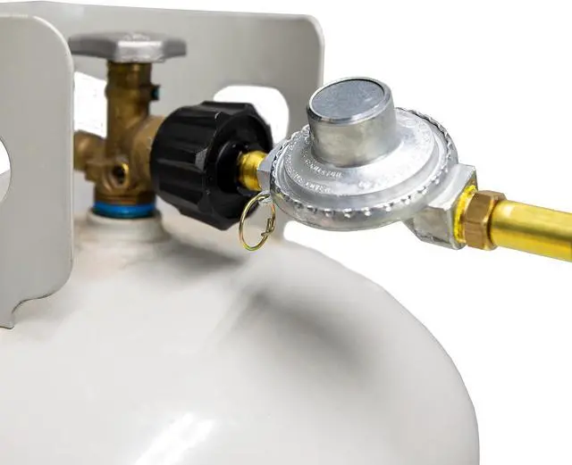Pol connection connects directly to twenty pound propane tank