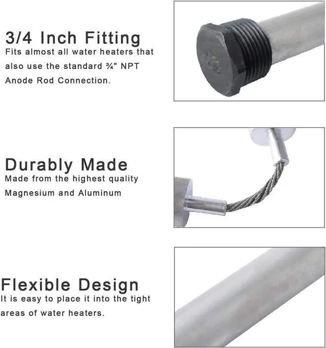 ADVANTAGES OF MAGNESIUM ANODE RODS - Magnesium anode rods produce a stronger current than Aluminum rods making them more effective at keeping the water tank from corroding. Anode rod is expected to provide about two years of corrosion protection.