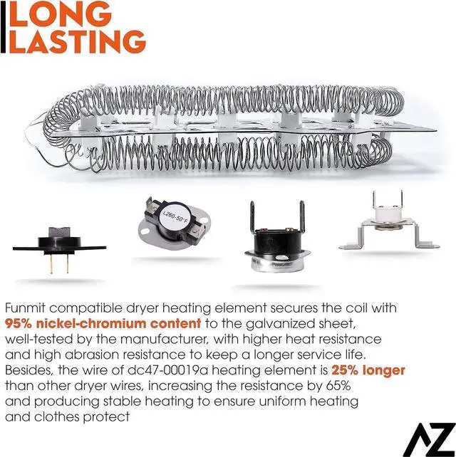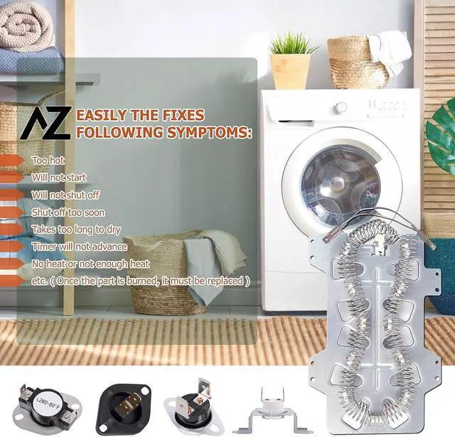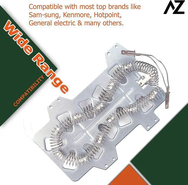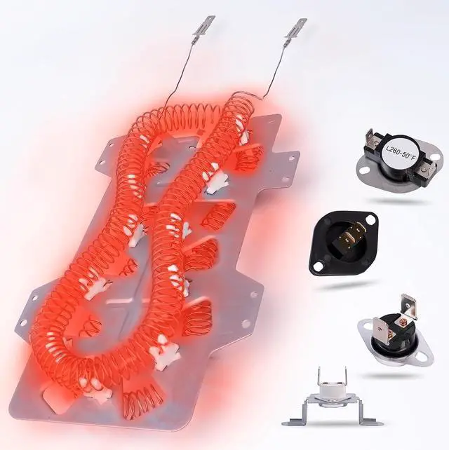 : This element is strung with a coiled wire. This wire receives, but resists, a controlled electric current and as a result, the wire heats up. The heat produced is used to dry the clothes in your dryer.