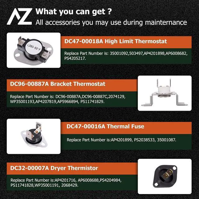 Replaces For Samsung Model: DV361EWBEWR/A3 DV42H5200EF/A3 DV419AEW/XAA DV203AEW/XAA DV209AEW/XAA DV210AES DV210AEW DV210AEW/XAA DV210AEW/XAC DV210AEWXAA DV218AEB/XAA DV218AEW/XAA DV219AEB/XAA DV219AEW/XAA DV220AEW DV220AEW/XAA DV231AEW/XAA DV306LEW/XAA DV328AEG/XAA DV328AER/XAA DV328AEW/XAA