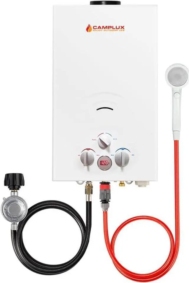 Installation Instruction & Package Content: Camplux BW264 heater comes with 1-year guarantee, 5 feet premium on/off shower head, 5 feet gas regulator, 1 set US-standard garden hose, and 1 installation hardware pack. Setting up this propane water heater simply takes 10 minutes
