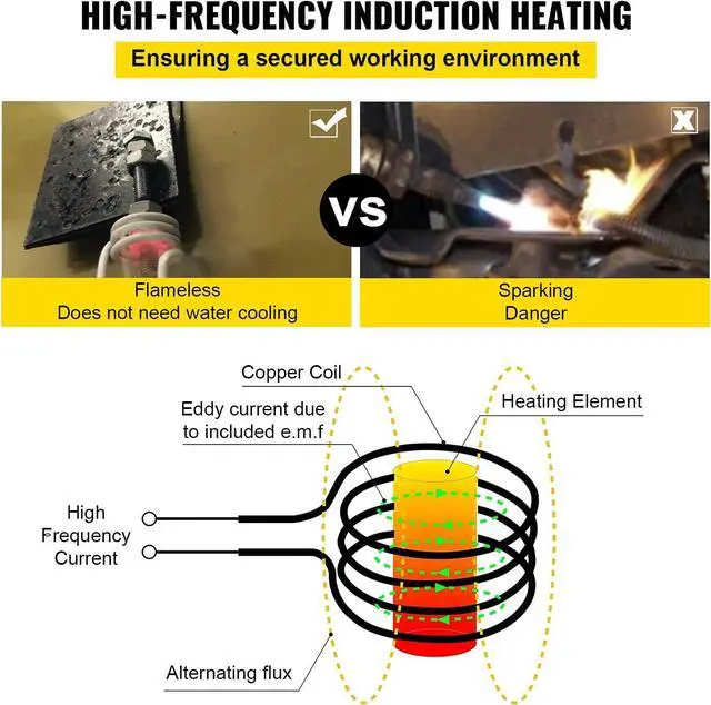 Flameless Heat: The induction bolt heater has a great performance, it adopts high frequency magnetic fields to heat up metal ONLY with induction heat.