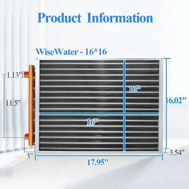 HIGH QUALITY ALUMINUM AND COPPER: 12 aluminum fins per inch and 3 rows of 3/8" seamless copper tubes maximize heating or cooling efficiency.