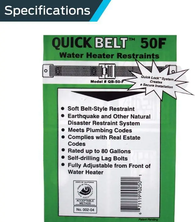 Holdrite QuickStrap QB-50-F Soft Belt-Style Water Heater Strap, Supports up to 80-Gallon Water Heaters