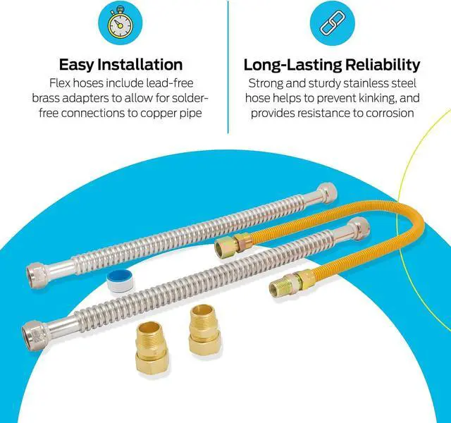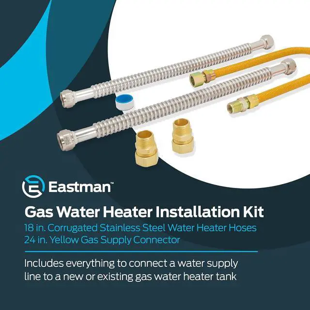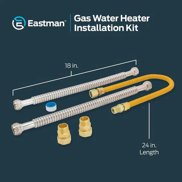 Includes (2) 18 inch corrugated stainless steel connectors, (2) compression adapters, (1) 24 inch gas supply connector, and (1) roll of sealing tape