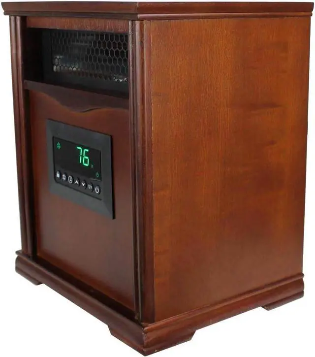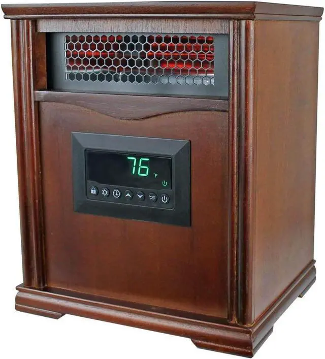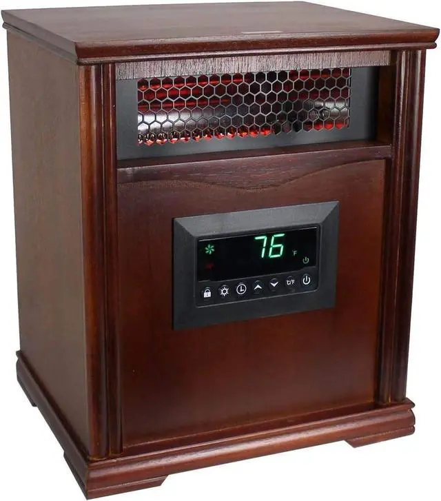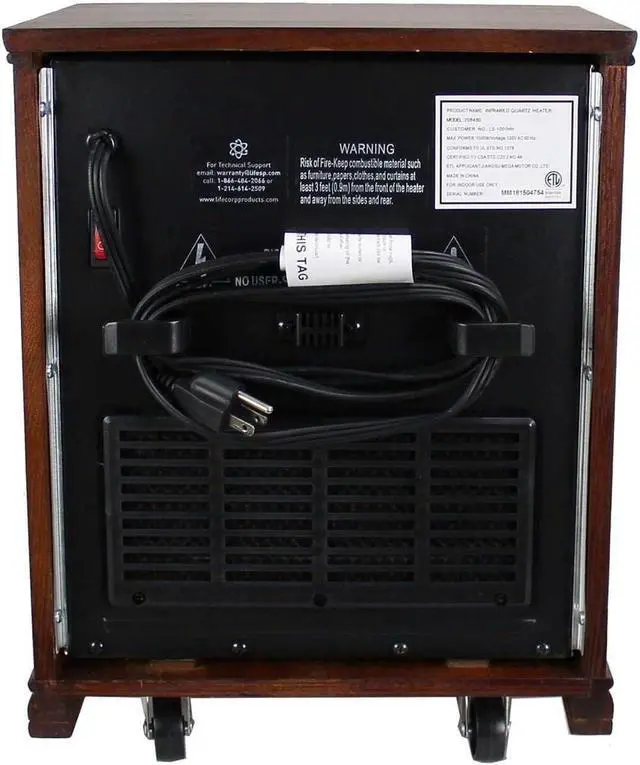 LifeSmart 1001HH 1500 Watt Portable Electric Infrared Quartz Space Heater for Indoor Use with 4 Heating Elements and Remote Control, Brown Oak Wood