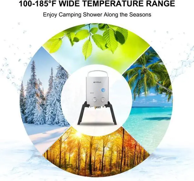 Superior Water Flow: This 5L propane portable water heater provides 1.32 GPM hot water on demand, you can enjoy a real home-style hot shower