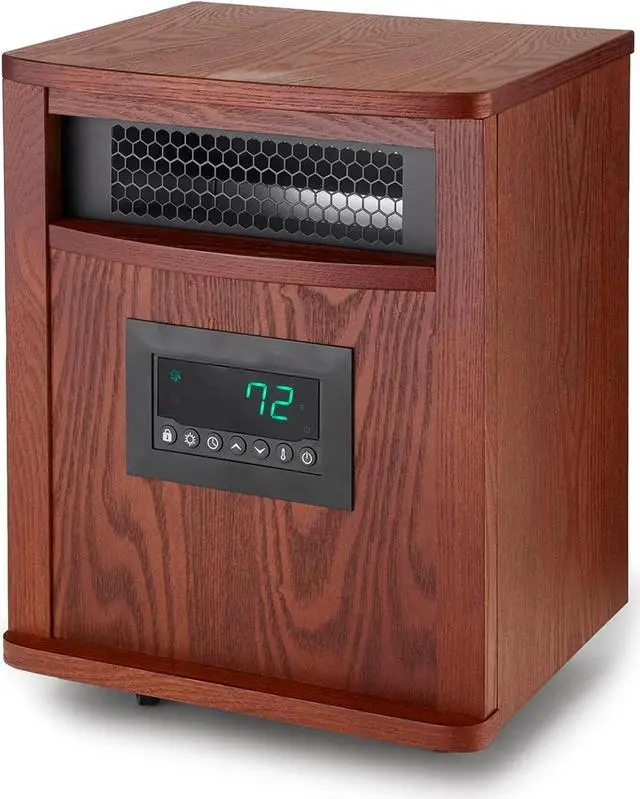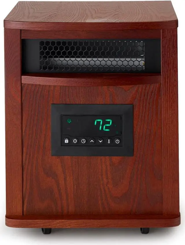 5100 BTU heats 1 large room FAST-heating 4 infrared quartz MICA smart boost Easy-glide casters High, low, and eco modes 12-hour programmable Extra large LED display Remote included