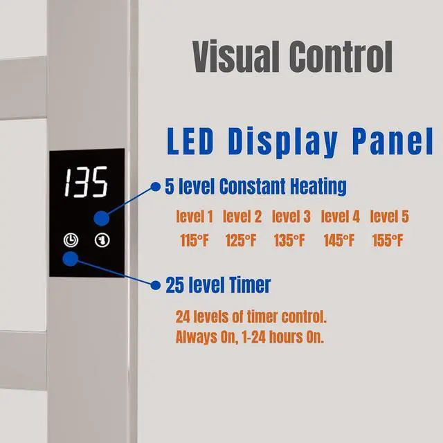 Overheating: Built-in Temperature Control feature with 110V, 100W fast heating to reach the designated temperature quickly and prevention of towels from smelling bad.