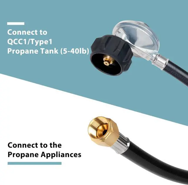 Multi-Purpose The propane regulator with hose fits for propane grill, camp stove, fire pit, heater, water heater and more low pressure device