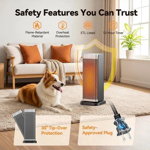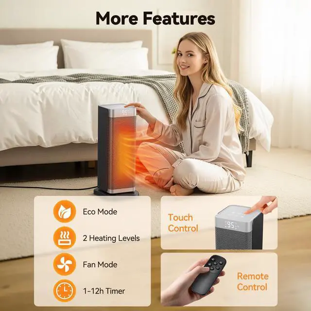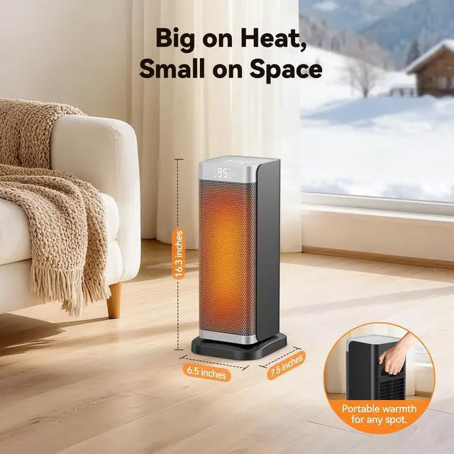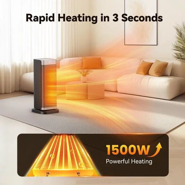 Space Heater, Portable Electric Heaters, 1500W PTC Ceramic Fast Safety Heat for Office Bedroom Home