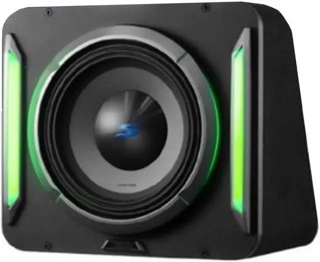 The Alpine S2-SB10 10 PrismaLink S-Series Preloaded Subwoofer Wedge Enclosure is a high-quality sound system with a preloaded S2-W10D4 10 S-Series subwoofer, enclosed in a sleek and compact sealed wedge style design. The enclosure also features an RGBW multi-color trim bar lighting system with an RF remote, allowing for a customizable and visually striking setup. Additionally, this subwoofer is multi-link capable, meaning that two or more enclosures can be linked together to further enhance the sound experience.