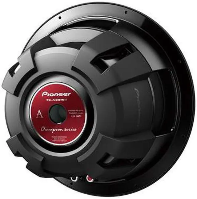 PIONEER TS-A301S4 - Powerful 12-inch Subwoofer, 1600 Watts Peak Power, Single 4 Ohm Voice Coil for a Powerful Bass || injection-molded polypropylene/glass fiber/mica cone with elastic polymer/reinforced fiber surround || power handling: 500 watts RMS (1600 watts peak) || mounting depth: 6.22" || ||