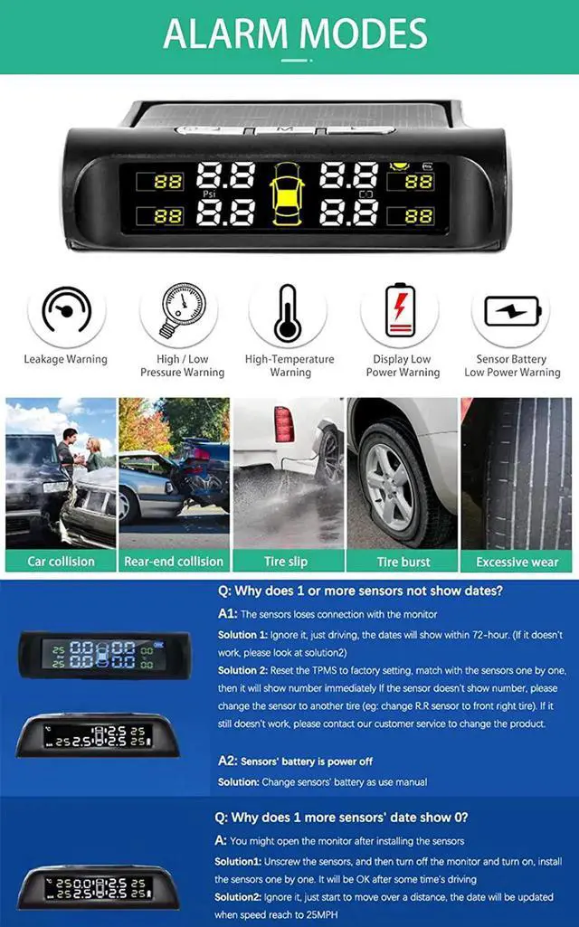 Tire safety is about life, 70% of high-speed traffic accidents were caused by abnormal tire pressure. Our Tire Pressure Monitoring System provide you with accurate measurement and reminds before the tire condition becomes dangerous to keep your driving safe.