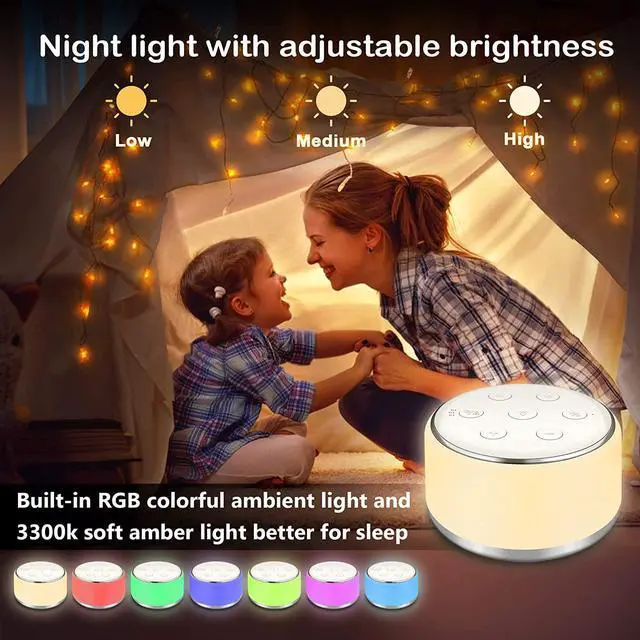 BABY NIGHT LIGHT built into our sleep sound machine has separate controls so you can use it with or without the white noise for sleeping. Select low, medium or high brightness and from 7 RBG colors including 3300K warm white to suit your nursery decor and create a restful environment for infants, kids and adults.