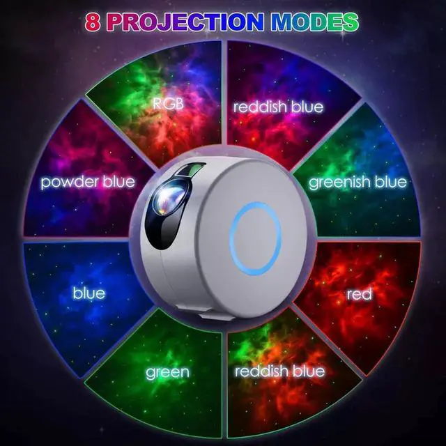 Travel in the Milky Way: Our star projector uses advanced technology combined with 3D holographic technology to provide an extraordinary visual experience. The projection effect of twinkling stars and clouds is more clear and vivid. This 3-color (red, blue, green) light projector supports solid color, bi-color and tri-color lighting effects, which can be switched manually or automatically, creating up to 16 lighting modes to enrich your visual experience.