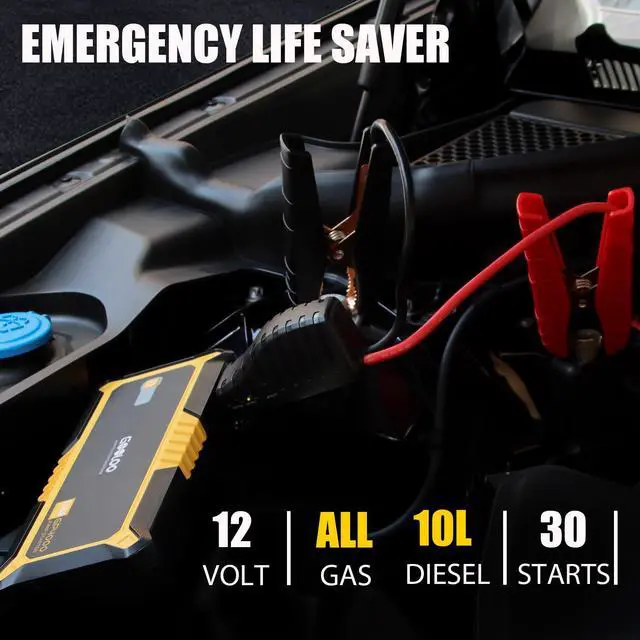It can be taken anywhere and can quickly charge numerous portable devices, such as smartphones, tablets, cameras, GPS systems, and more. Emergency Life Saver The GOOLOO GP4000 portable car battery jump starter can jump start vehicles in a matter of seconds so that you arent stranded and unsafe for longer than needed. A full charge can boost most vehicles over 60 times! Safety & Quality Metal Clamps - Built-in 10 types of protection, free your worries of misuse and sparks. We wanted to make sure our users feel 100% safe when using our product.