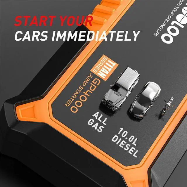 Powerful And Reliable Car Battery Jump Starter - With a 4000A peak current, it can start all gasoline engines and diesel engines up to 10.0L in just a few minutes. This includes cars, motorcycles, RVs, tractors, trucks, cargo vans, ATVs, snowmobiles, yachts and many more. High Capacity Portable Charger - The GP4000 portable car battery jump starter is equipped with dual USB charging output ports (one compatible with fast charging) and a USB Type-C charging port (5V/3A). You can use it to charge other devices or recharge the Jump Starter itself.