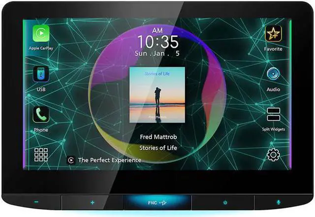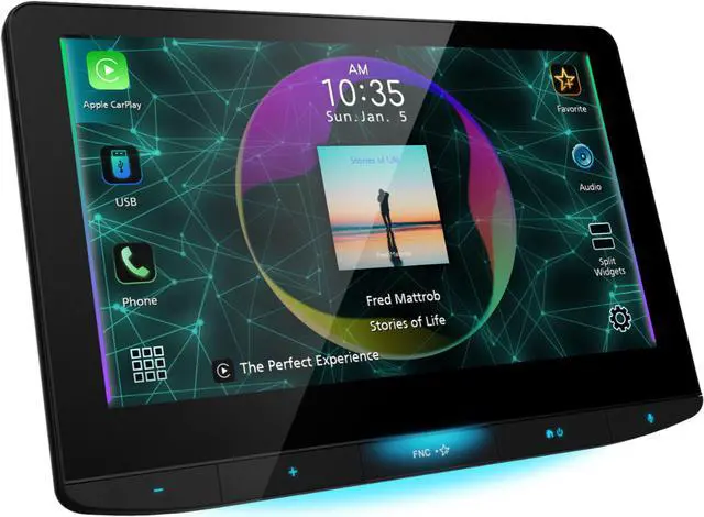 JVC's KW-Z1000W digital media receiver uses its impressive 10.1" touchscreen display as a big helper on your drive. Its easy-to-read display shows off familiar smartphone interfaces by using wired or wireless Apple CarPlay and Android Auto - incredibly handy for navigation, music, and podcast apps. Even when you're simply using the JVC's display, you can customize it with the look that works best for you.