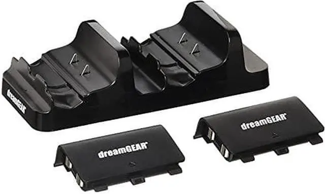 • The dreamGEAR Dual Power Dock consists of 2 rechargeable battery packs and a charging station that can charge two wireless Xbox One controllers simultaneously. An LED charge indicator quickly provides a status update. The dock plugs conveniently into the Xbox One console and has a slim, compact design to match your setup and aesthetic. You can also charge the batteries directly with an included charging cable. Stop buying batteries and upgrade your controllers with the Dual Power Dock by dreamGEAR, an American company.