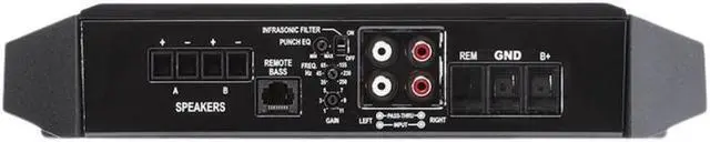 300 watts RMS x 1 at 4 ohms (500 watts RMS x 1 at 2 ohms)