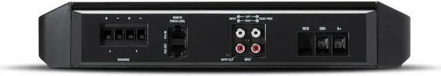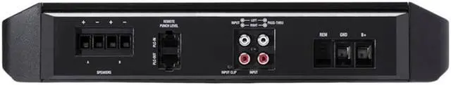 - Signal-sensing turn-on with speaker-level inputs eliminate need for remote turn-on lead