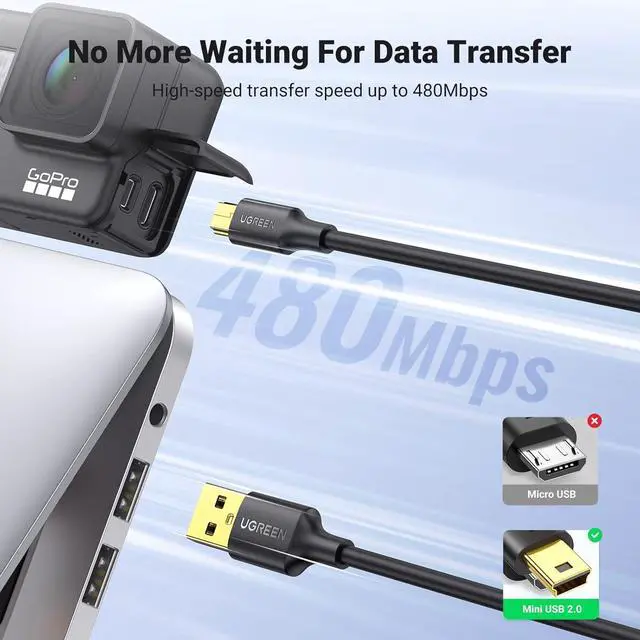 • SuperSpeed for Transfer & Charging: UGREEN mini USB cable supports the speed at up to 480 Mbps for data transfer which is backward compliant with full-speed USB 1.1 (12 Mbps) and low-speed USB 1.0 (1.5 Mbps) and provides 2A power charging for devices with usb mini port.
