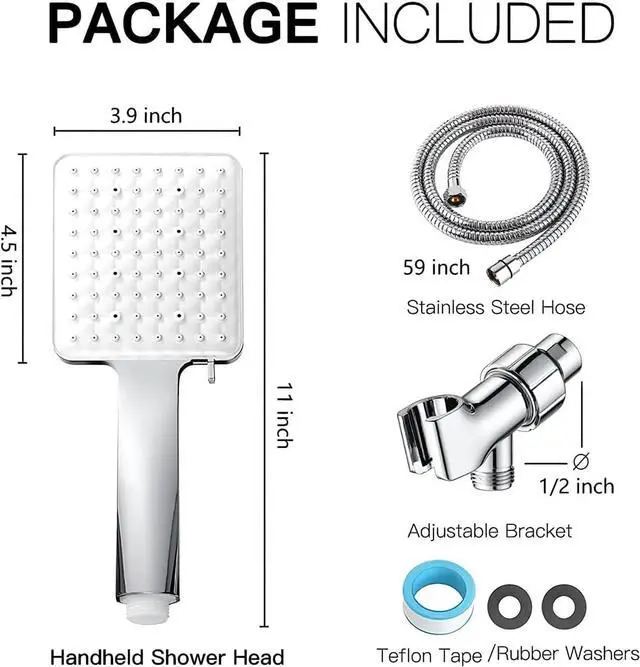 Easy to install - No need to call a plumber. You can easily install the removable shower head in minutes. All the connectors are standard size, suitable for most universal shower heads with its G1/2" Ends.