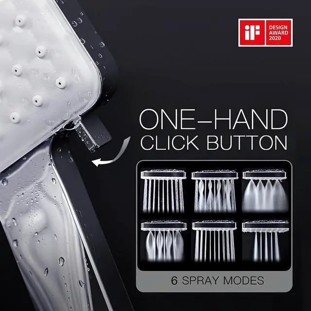 High Flow handheld shower heads with 6 Spray Settings - The powerful shower head can efficiently increase water pressure. The 6 modes full settings shower head can meet your various needs, allowing you to enjoy a comfort showering.