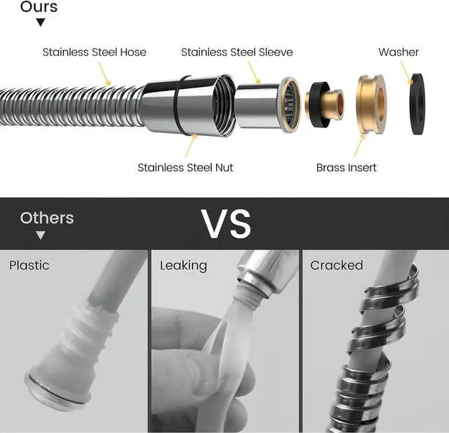 High Pressure Shower Heads - The durability, comfort and safety of the detachable shower head are ensured by the ABS pearlescent panel, glossy chrome-plated surface, anti-limescale silicone nozzles, stainless steel leak-free hose and angle-adjustable bracket.