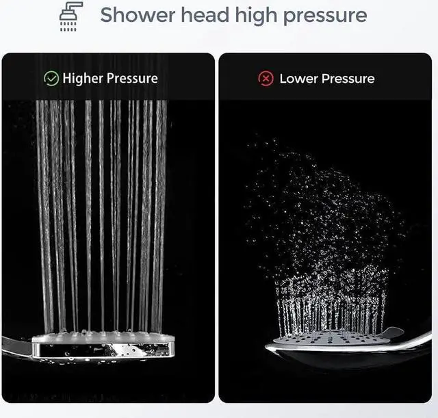Ergonomic Shower Head with Long Hose: The crisp square outline of the high flow shower head provides a full and even water coverage, allowing you and your family members to enjoy a luxurious shower. The handheld shower head with extra long hose also meet water efficiency and performance criteria to help reduce water use, without sacrificing high pressure performance.