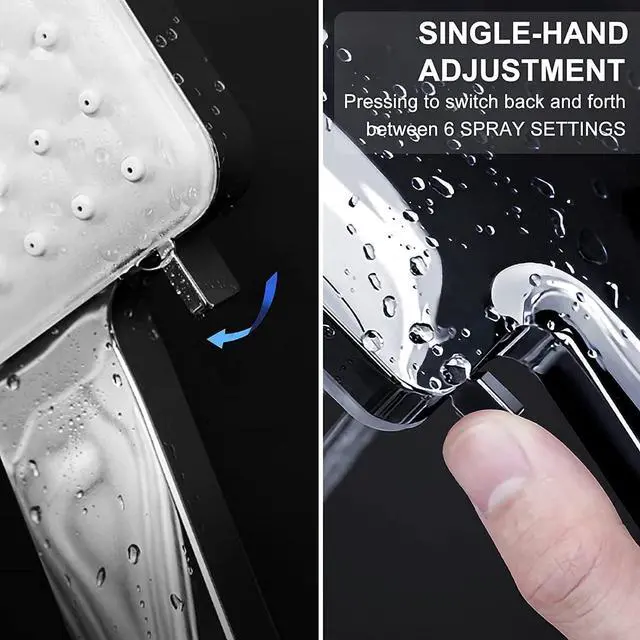 6 Spray Setting Handheld Shower Head: Handheld Shower Head include 6 spray settings: Spray, Massage, Mist, Mist+Spray, Spray+Massage, Mist+Massage. It is suitable for hair washing, gentle shower, massage, child or pet bath, and bathroom cleaning etc. Pelagia pressure increasing showerhead guarantees an all-over exhilarating shower experience from head to toe.