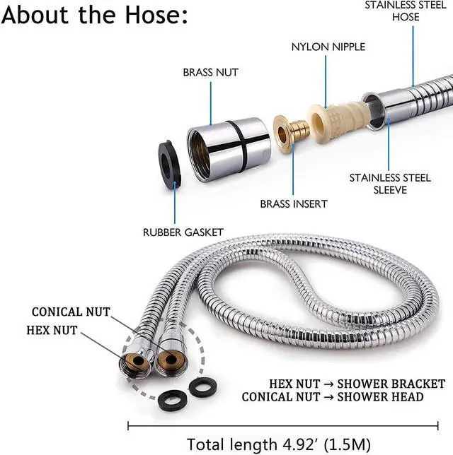 FLEXIBLE STAINLESS STEEL HOSEDurable Heavy-duty design with Brass Connection Nuts for easy hand tightening, which is perfect for reaching those hard to reach areas & cleaning the bath tub.