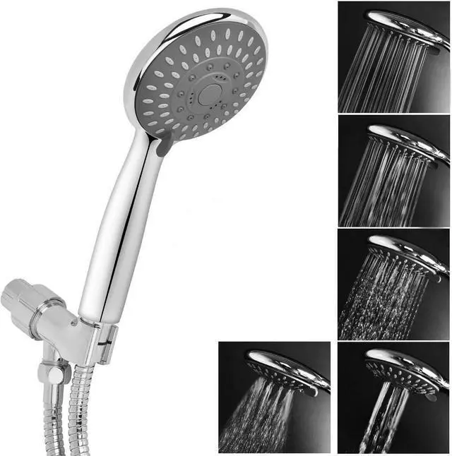 SPRAY WITH 5 FUNCTIONLuxury hand held Shower heads with hose has 5 functions: Power Mist, Power Rain, Rain Massage, Rain Mist, Pulsating Massage.