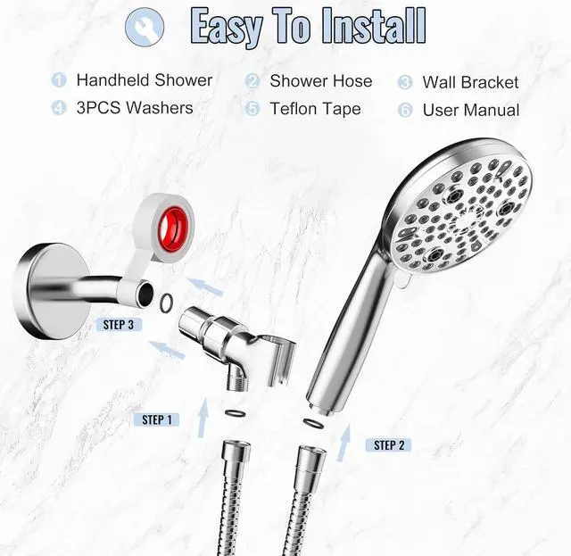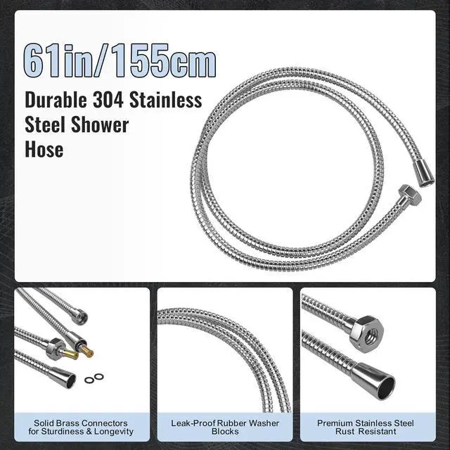 Long Extra-Flexible Hose: The included 61-inch stainless steel hose high efficiency shower head provides maximum reach and flexibility, making it ideal for bathing kids, washing pets, and cleaning your shower. The handheld shower attachment durable and rust-proof for long-lasting use.,
