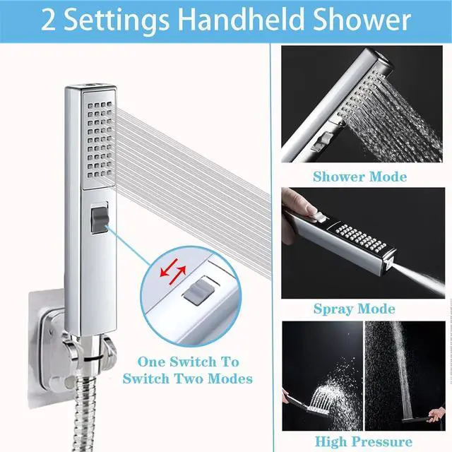 SHOWER HEAD WITH HANDHELDThe 2-in-1 handheld shower can not only be used in the shower, but also can be switched to the spray gun mode with one button when the button is pushed by hand, which can clean. You can use it to bathe pets, to clean the bathroom and so on.