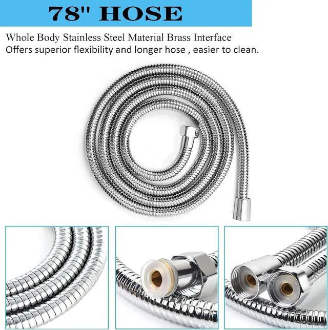 78" STAINLESS STEEL SHOWER HOSE our shower heads with handheld spray combo equipped with 78" hand -held shower hose. Offers superior flexibility and longer than other hand showers hose, easier to clean. Which brings you great convenience.