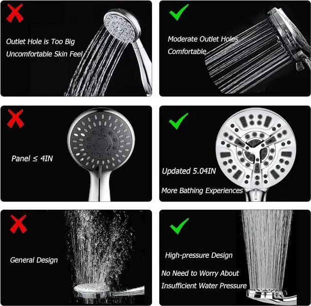 HIGH PRESSUREThis powerful and versatile handheld shower head kit accelerates water flow and increases water pressure in low water pressure situations. It won't put a damper on your showering experience. Since it have 10 spray patterns, this handheld shower is not only suitable for personal bathing but also for bathing your pets!