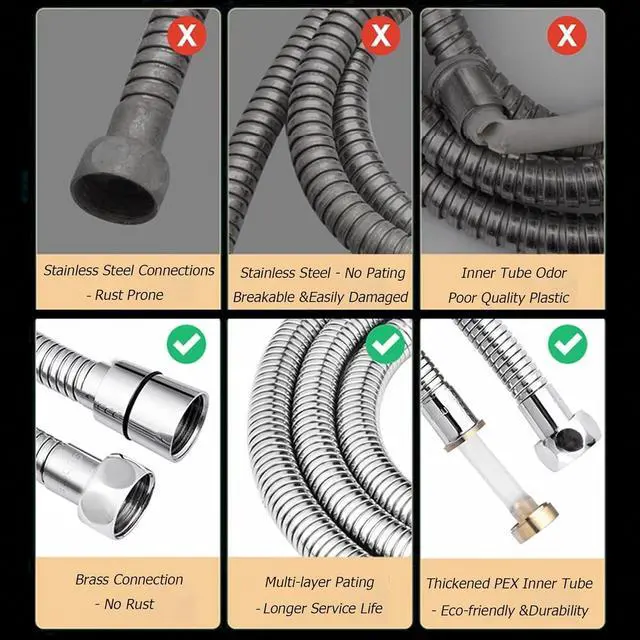 SUPERIOR MATERIAL & 5.04" Big Panel The TIVMIK hand shower is made of high-quality ABS material with a chrome finish. The refined chrome finish makes it lightweight, durable, rust-resistant, and fade-resistant. The flexibility of the Brass adjustable bracket makes every shower comfortable and convenient. 59.1" stainless steel hose & 5.04" large shower panel bring you a better shower experience.